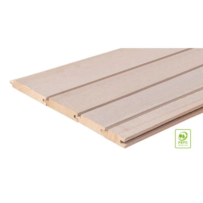 Das Marienhofprofil ist in 4 Breiten erhältlich, welche Sie nach belieben kombinieren können. Dadurch ergibt sich das außergewöhnlich abwechslungsreiche Erscheinungsbild dieser vertikal geschlossenen Fassade. Durch die Nut + Feder Verbindung entsteht eine Sichtfuge von 10 mm.